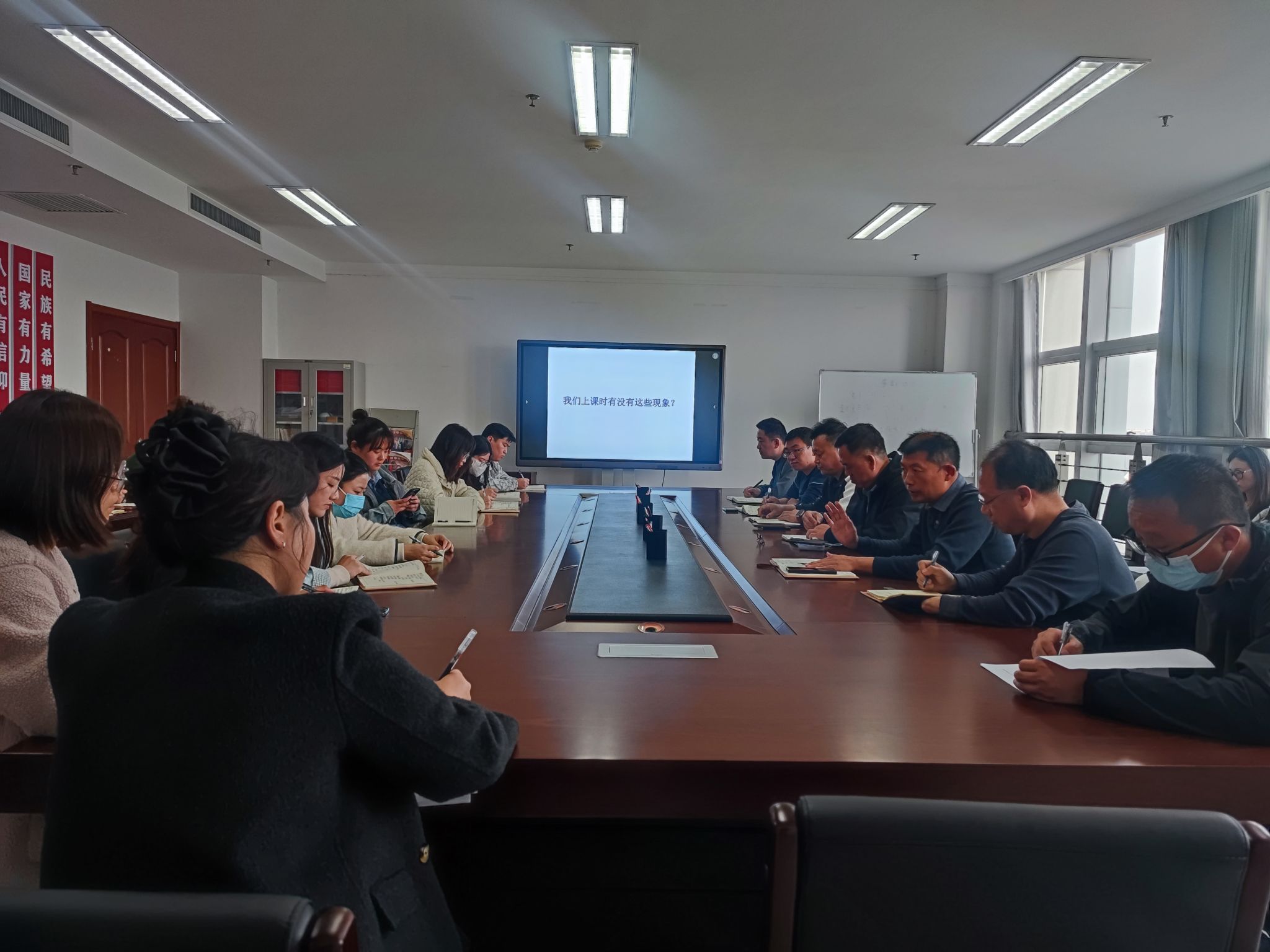 会议主要包括以下议程:一是教学科根据日常教学督导、听课和巡课等中发现的问题,直接点明教师在授课、备课、课堂管理等方面存在的不足,并提出了改进要求和措施;其他参会人员指出教师要明确教学的客观标准和良心标准,提升心态,注重与学生的交流,挖掘课程思政的细节。二是分管综合管理的副院长着重强调教学工作纪律,首先,教师提前 10 分钟到教室做好准备,确保教学顺利进行,其次,上课要全身心投入,不做无关之事,最后,教师要维护办公环境,树立良好职业形象。三是党总支副书记针对教学内容和方法提出具体要求,指出教师要依据教学日历合理安排教学内容,推进教学进度。深入钻研教材,掌握知识点,了解学生特点进行因材施教,并倡导采用 “对分课堂” 等先进模式,提高学生课堂参与度。四是赵金奎书记从有情怀、有敬畏、有反思、有目标四个维度对教师作出指导和要求,希望新教师怀揣教育情怀,关爱学生成长;敬畏教育规则,坚守职业道德;定期反思教学问题,改进教学方法;明确职业发展目标,努力奋进。