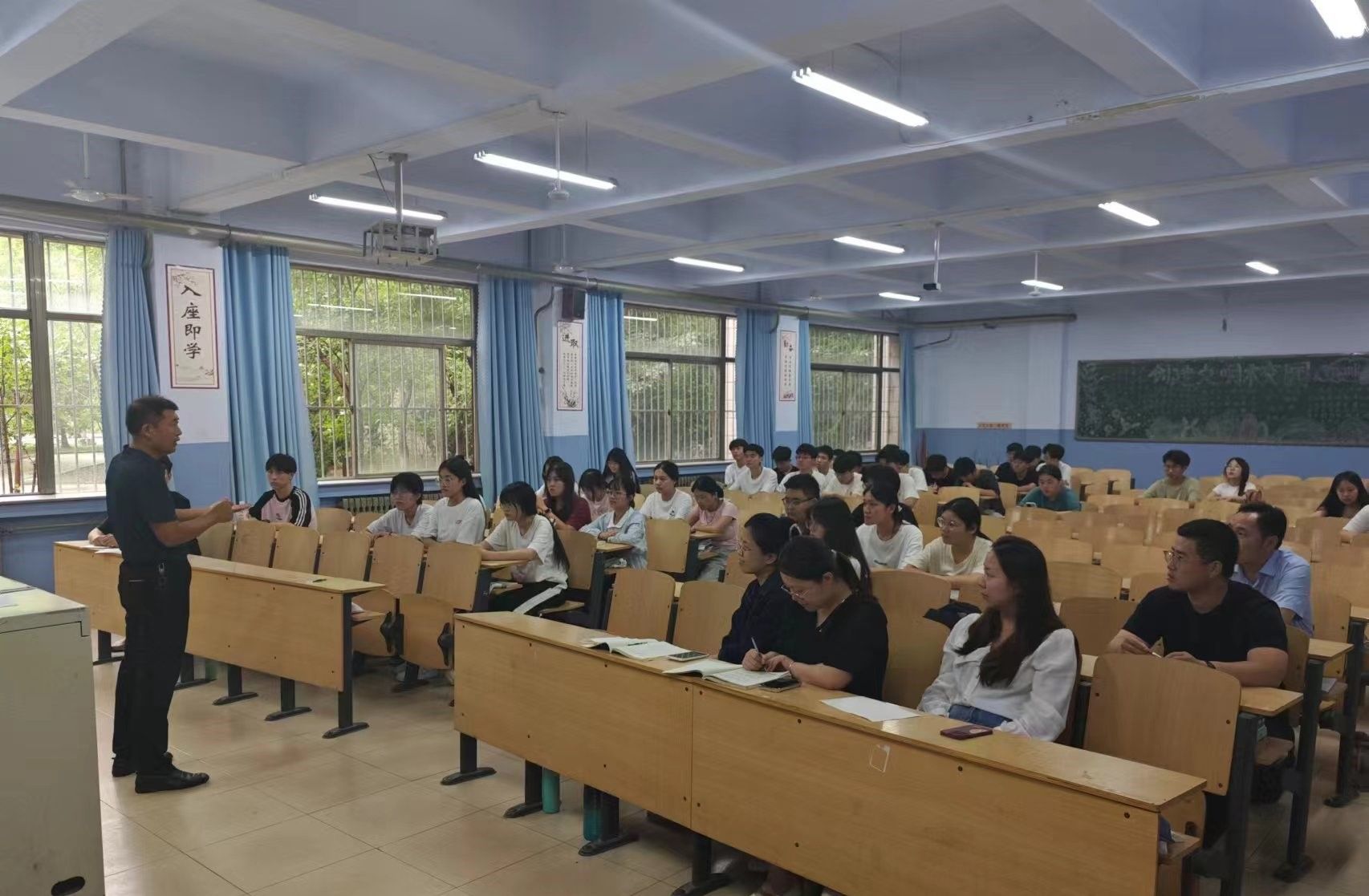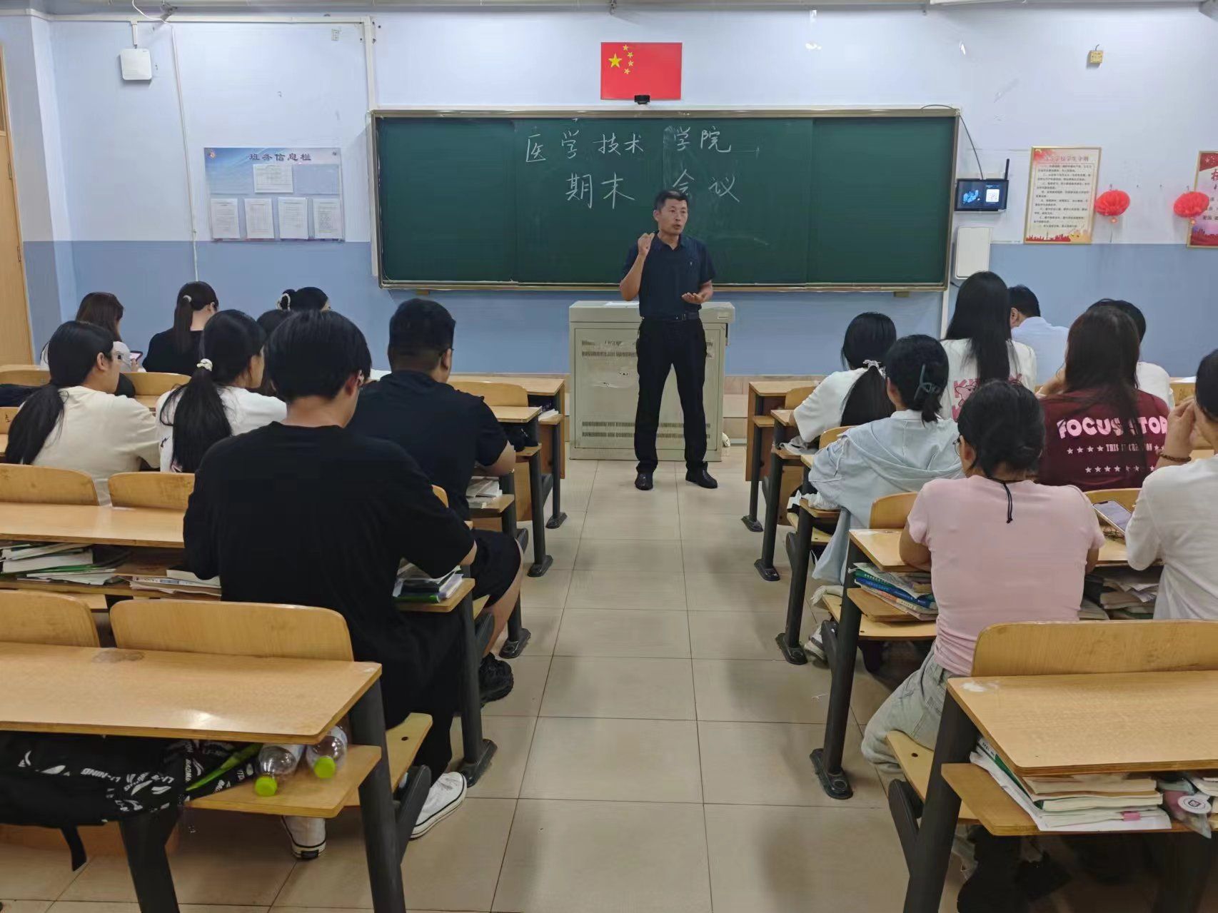 会上,党总支副书记围绕近期学生工作进行安排部署:一是守牢安全底线,以班级为单位,提醒每一位学生注意交通安全、饮食安全、用电安全、防诈骗防溺水;二是坚持值班执勤,学生干部配合辅导员老师严格落实值班执勤工作,坚决杜绝不文明行为;三是服从宿舍调整,针对学校的工作安排,学生干部要带头配合,清理宿舍卫生,确保顺利完成宿舍调整工作;四是开展社团活动,以暑期“三下乡”社会实践为契机,带动各班同学积极发挥专业优势,在实践中充实暑期生活;五是督促就业工作,要求全体辅导员老师督促毕业生尽快确认就业去向,积极与学生沟通,帮助学生高质量就业;六是备战期末考试,学生干部要积极带头学习,认真准备期末考试,争取考出优异成绩。