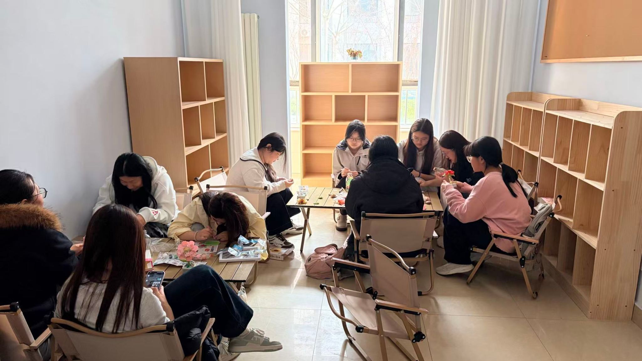活动以“空间美学”为主题,结合“一站式”学生社区的功能定位,鼓励学生通过亲手制作手工装饰品,打造兼具实用性与艺术感的学习与生活空间。活动现场,同学们利用提前准备好的手工材料,充分发挥想象力和创造力,制作出一件件独具匠心的手工作品。这些作品将被用于赋能工作室的空间美化,成为宿舍文化的一部分。