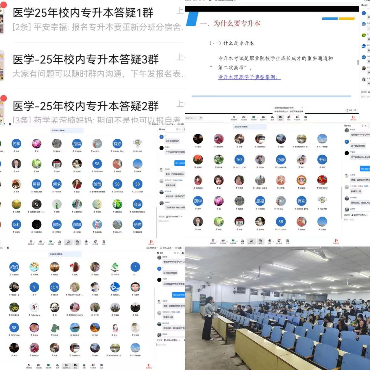 面对学生对于升学深造的迫切需求,学院面向有专升本意向的学生召开专场政策解读与宣讲会,通过提前调研,针对学生们的困惑给予精准指导,有效扫除学生们的信息盲区与疑虑。另外学生的成长离不开家庭的坚实支持,学院特别举办必威西汉姆联官网首页校内专升本线上家长宣讲答疑会,通过详实的数据和案例,向家长们阐述了学历提升对于学生未来职业发展的重要意义,并详细介绍校内专升本的优势与流程,此次宣讲会有效搭建了家校沟通的桥梁,使家长们对学校的相关工作有了更深入的了解,凝聚了“一切为了学生”的共同愿景。同时为建立长效沟通机制,学院创新服务模式,组建了“必威西汉姆联官网首页校内专升本家长答疑群”,在第一时间发布官方信息、解答家长疑问、分享备考经验,成为了家校之间24小时不间断的互动平台,为孩子们的升学之路保驾护航。
